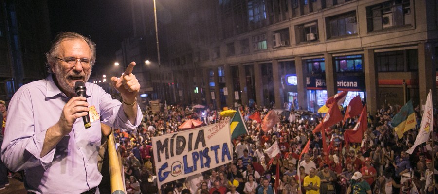 O ex-governador do Rio Grande do Sul, Tarso Genro, também apontou a falta de legitimidade de um hipotético governo Temer. “Se chegarem ao governo desta maneira, encoberta por uma mídia manipuladora, o que acredito que não irá acontecer, não terão nenhuma legitimidade para governar. No dia seguinte já estaríamos nas ruas denunciando essa falta de legitimidade e defendendo a realização de novas eleições”. “A parte mais comprometida com as denúncias de corrupção”, acrescentou Tarso, “saiu do governo e está tentando derrubar a presidente da República com um golpe”. Outro ex-governador gaúcho, Olívio Dutra, também denunciou a tentativa de golpe. “Queremos mudanças, mas não para pior, interrompendo o mandato legítimo da presidenta Dilma, conquistado com mais de 54 milhões de votos”.