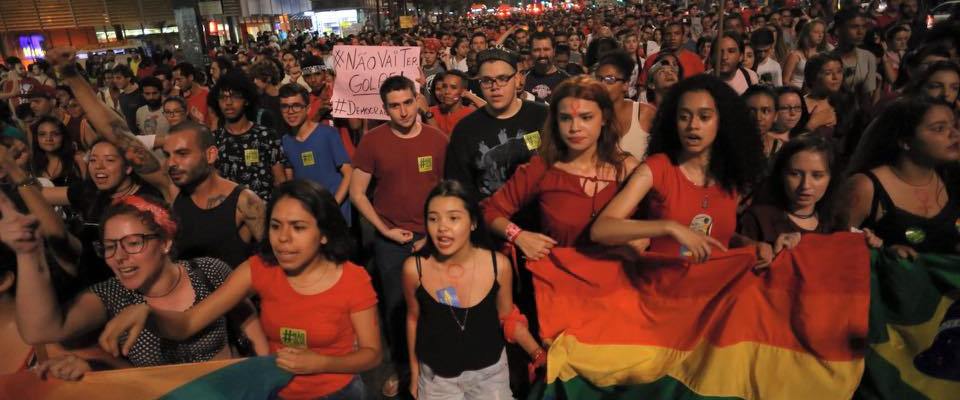 manifestação espontânea contra o golpe aos gritos de “Fora Bolsonaro, Fora Cunha e Fora Temer”.
