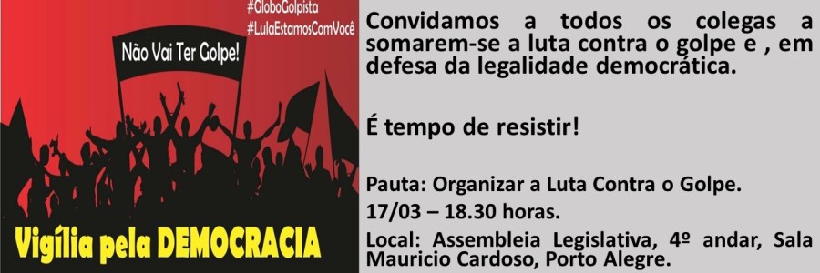 O Dr. Marcello Lavenère, ex-presidente nacional da OAB, enviou calorosa carta às centenas de magistrados (as), promotores (as), advogados (as) que estiveram reunidos ontem (15/04) na Aula Pública de Direito Constitucional realizada em Porto Alegre. Na carta lida aos presentes Lavenère disse: A Democracia que vocês neste Ato defendem com coragem e mobilização prevalecerá sobre a intolerância,… Leia mais Lavenère a juristas gaúchos: “Não compactuaremos com o golpe”.